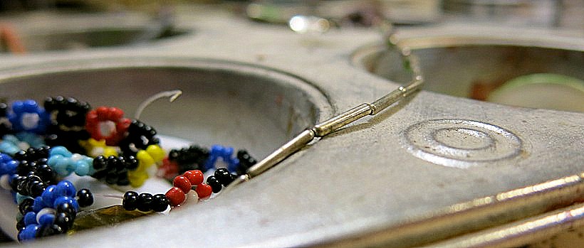 While much of her formal education (such as classes in gemmology, measuring and technical drawing) is of limited relevance to her current work, it’s extremely handy as a crafter in many media to have a good grounding in, say, the practice and principles of annealing. George Brown is also where Kathrin learned to make 1:1 visual records of necklaces, bracelets and earrings by lining them up on the beds of photocopiers and scanners. The resulting pages are conveniently stored in chronologically-arranged binders. And why not photocopy a pleasing assortment of oak leaves that could serve as the basis for some future design?